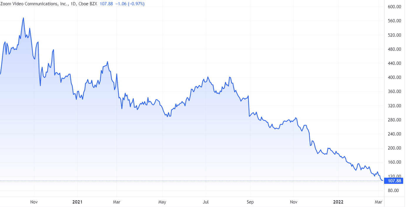 On October 19, 2020, Zoom's shares were at an all-time high of $568.34. Since then, they’ve fallen 80%. The company has now announced a $1B share buyback. With Microsoft Teams capturing the large corporate accounts and going after Zoom with everything it has, it’s anybody’s guess whether Zoom’s glory days are behind it.