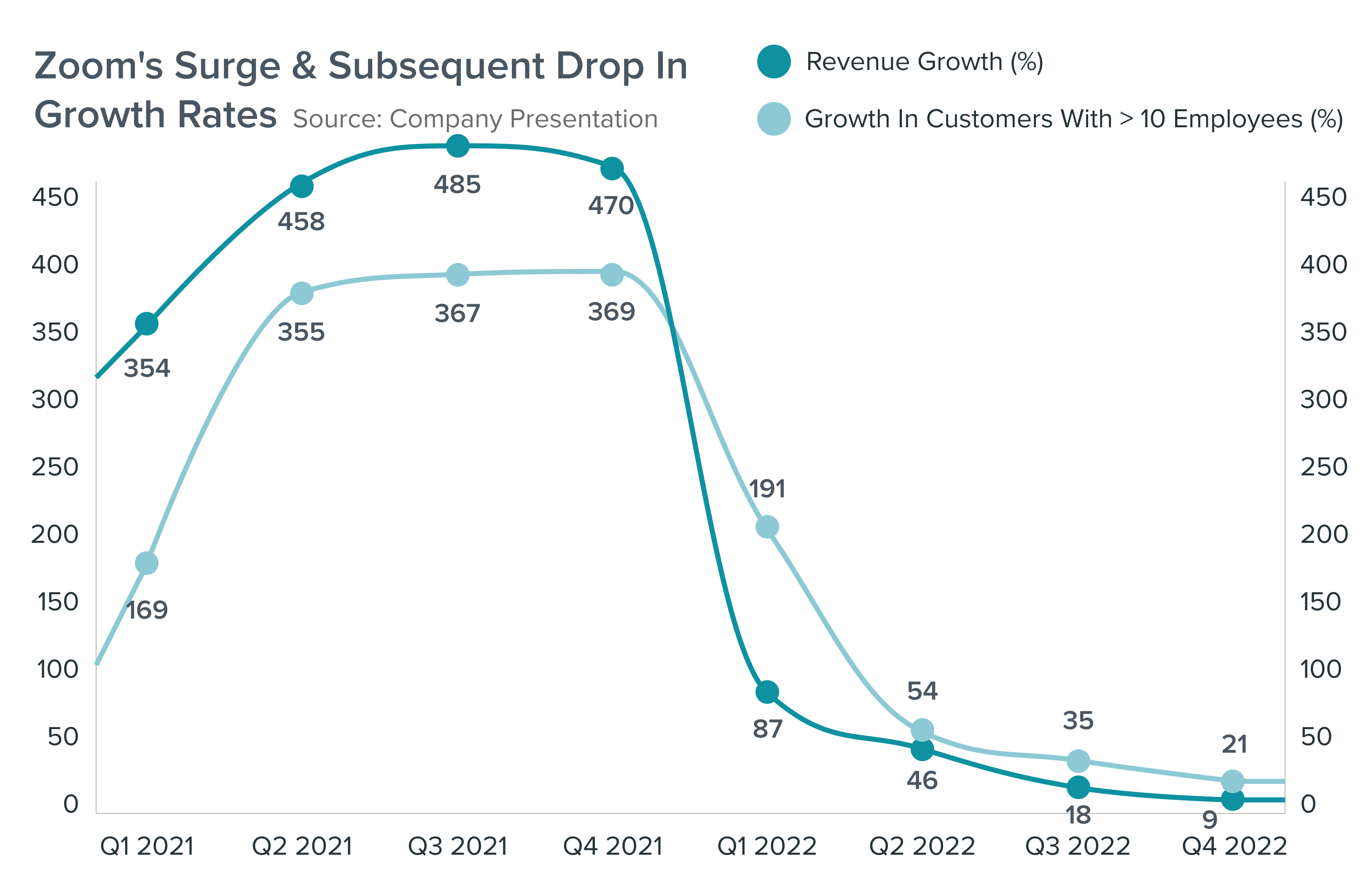 So where’s the issue, you ask? For the first time as a public company, Zoom reported a decline in customers with over 10 employees. The number fell to 509K from 512K in Q3 FY2022. On a Y-o-Y basis, that number grew 9%.