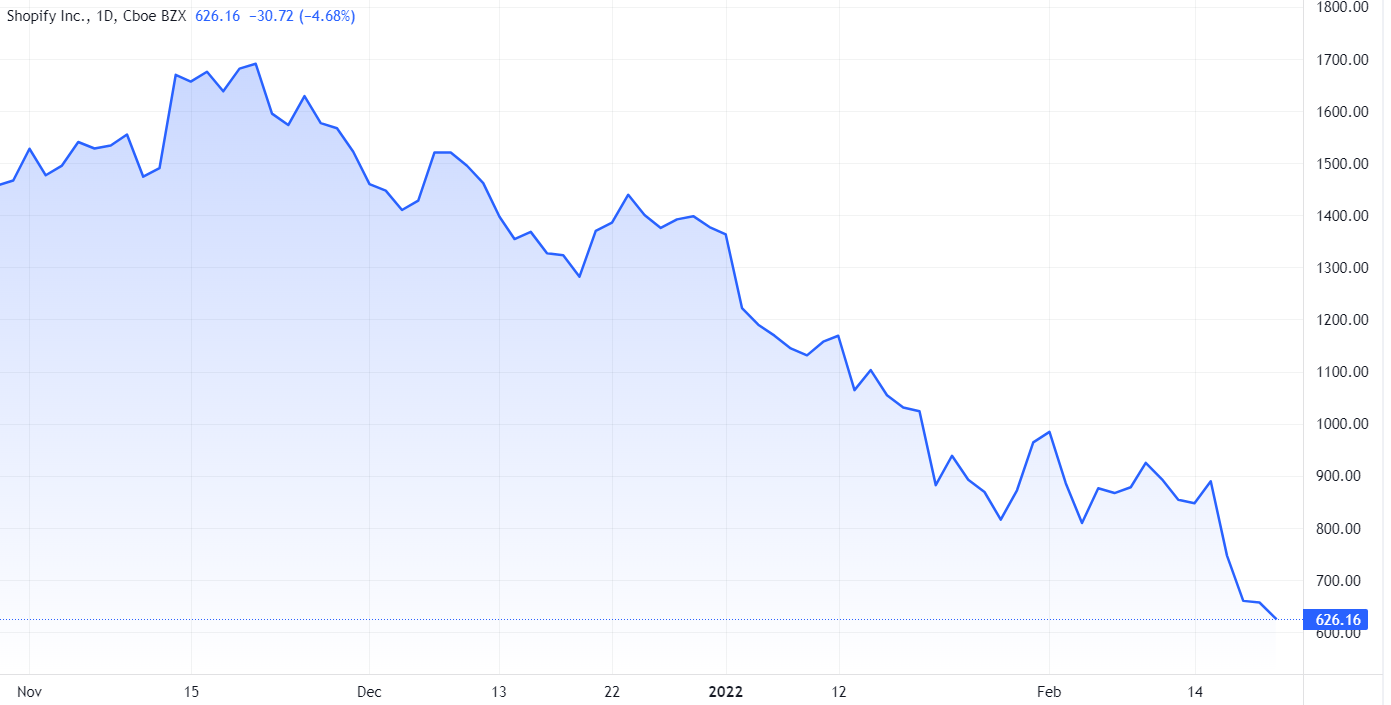 Fifty days into 2022, Shopify’s (SHOP) meteoric share price seems to be in super correction mode. Shares have fallen by half, and the company is warning of lower revenue for the first three quarters of 2022. Does the end of the pandemic mean a growth-dampener for Shopify? (Tweet This)