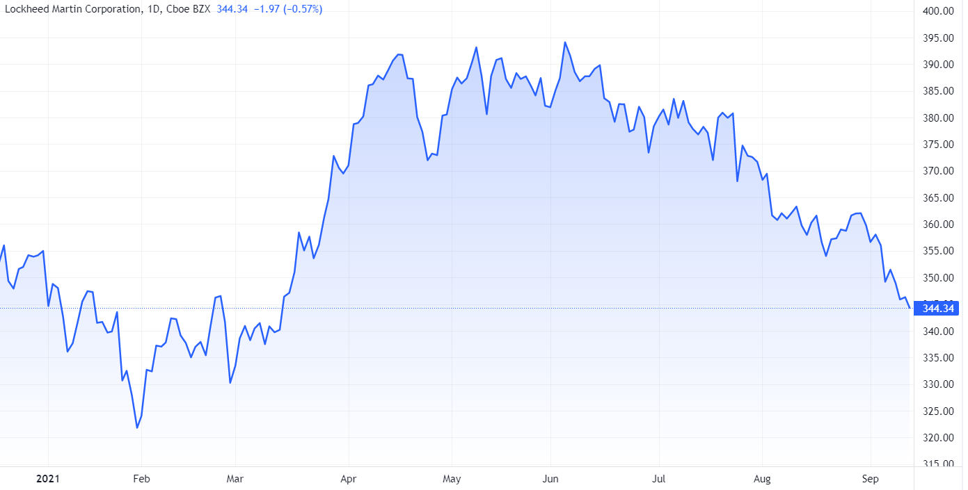 LMT ended at $344.34, down 0.57%. Shares are unchanged YTD and down 12.3% this year.