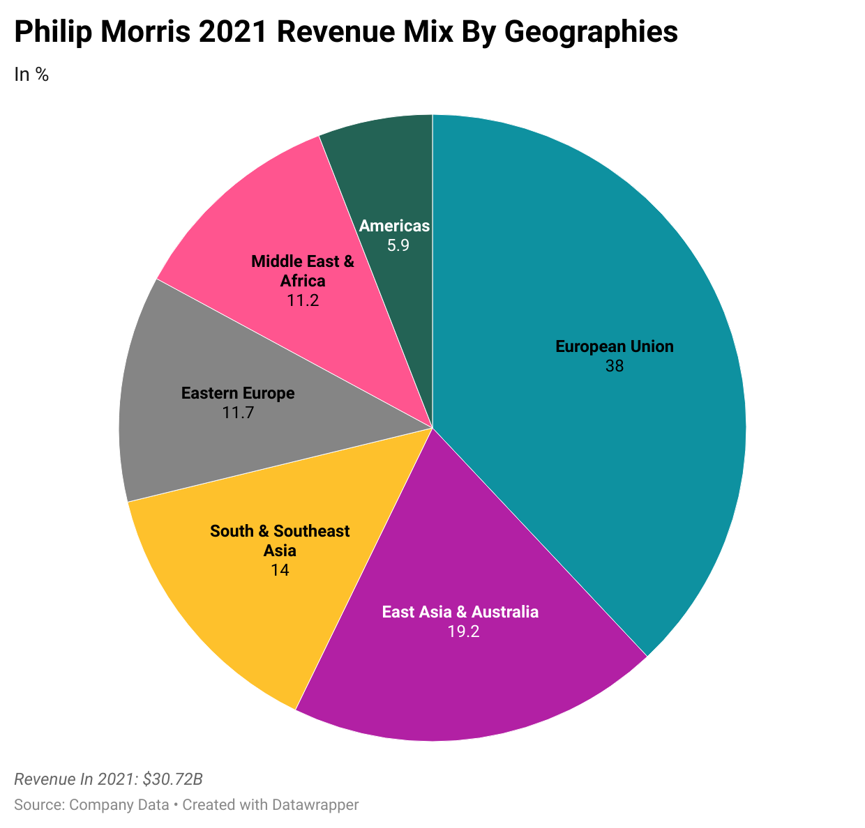 Philip Morris suspended operations in Ukraine last month - a factory that employed 1.3K people in an area that Russia has attacked. So whatâs at stake here? Ukraine accounted for close to 2% of the total cigarette and heated tobacco unit shipment volume and under 2% of the total revenue. Basically, not much of an impact financially.