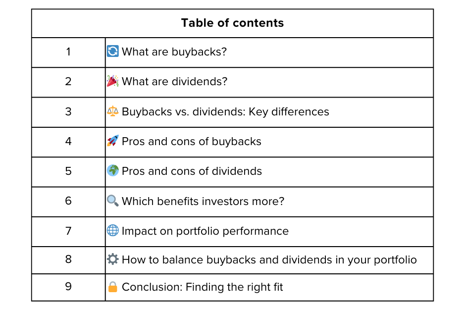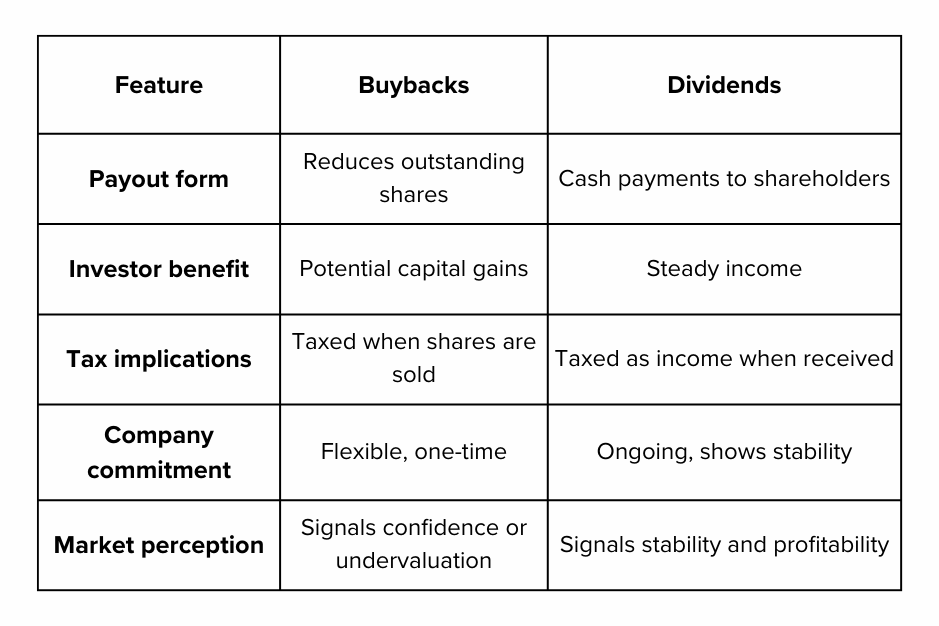 If you’ve ever wondered whether to choose a stock because of its buyback program or its dividend history, this guide breaks it down for you. We’ll explore what buybacks and dividends are, their benefits and drawbacks, and how to balance them in your portfolio for the best results.