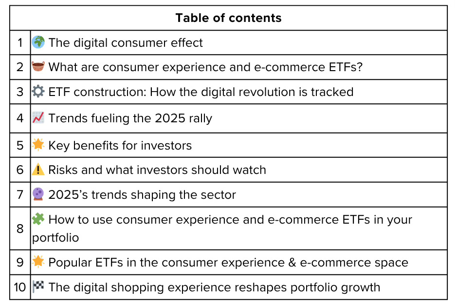 The way people shop, interact, and spend is evolving at unprecedented speed. In 2025, digital convenience, real-time reviews, direct-to-consumer brands, and omnichannel strategies have transformed global retail and consumer experience. As companies race to meet ever-rising expectations, a new class of exchange-traded funds—Consumer Experience and E-Commerce ETFs—gives investors diversified access to those leading the wave. This article explores the trends, opportunities, and innovations driving this sector, and how investors can ride the momentum still reshaping the retail world.