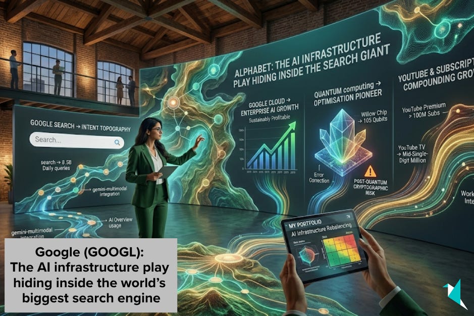 Most investors still think of Google as a search engine that happens to own YouTube. That framing is accurate and dangerously incomplete. Today’s Alphabet is simultaneously the world’s dominant intent-driven advertising marketplace, a fast-growing cloud infrastructure provider competing seriously for enterprise AI workloads, and a quantum computing pioneer whose own researchers are flagging long-term cryptographic risks that could reshape enterprise cloud security over the coming decade. It processes over 8.5 billion searches daily, commands over a billion hours of daily YouTube watch time, and runs one of the three largest hyperscale cloud platforms globally.
