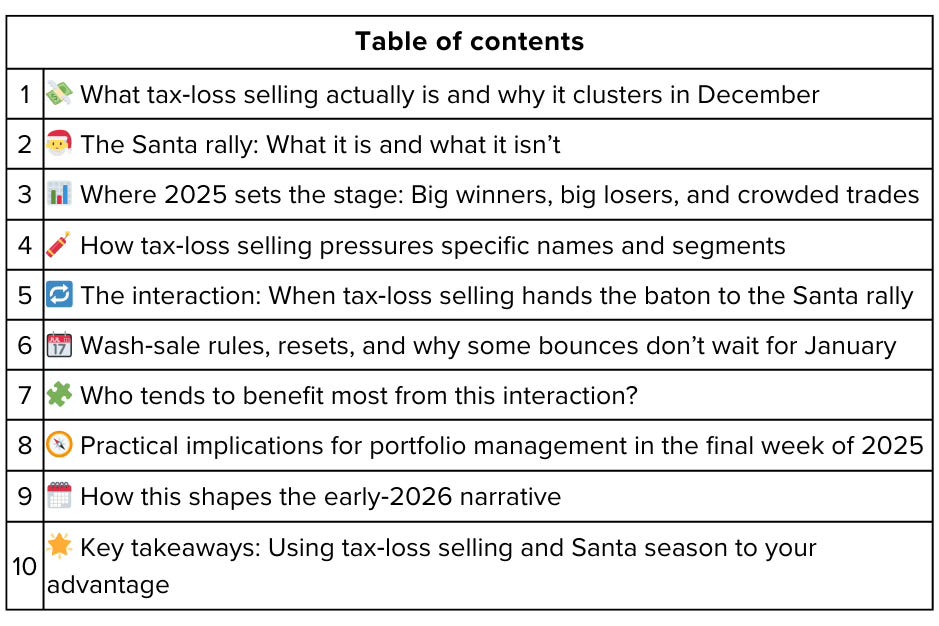 The interesting part is the timing. In practice, the heavy tax‑loss selling and the early phase of the Santa rally overlap in the final full week of December—exactly where we are now.