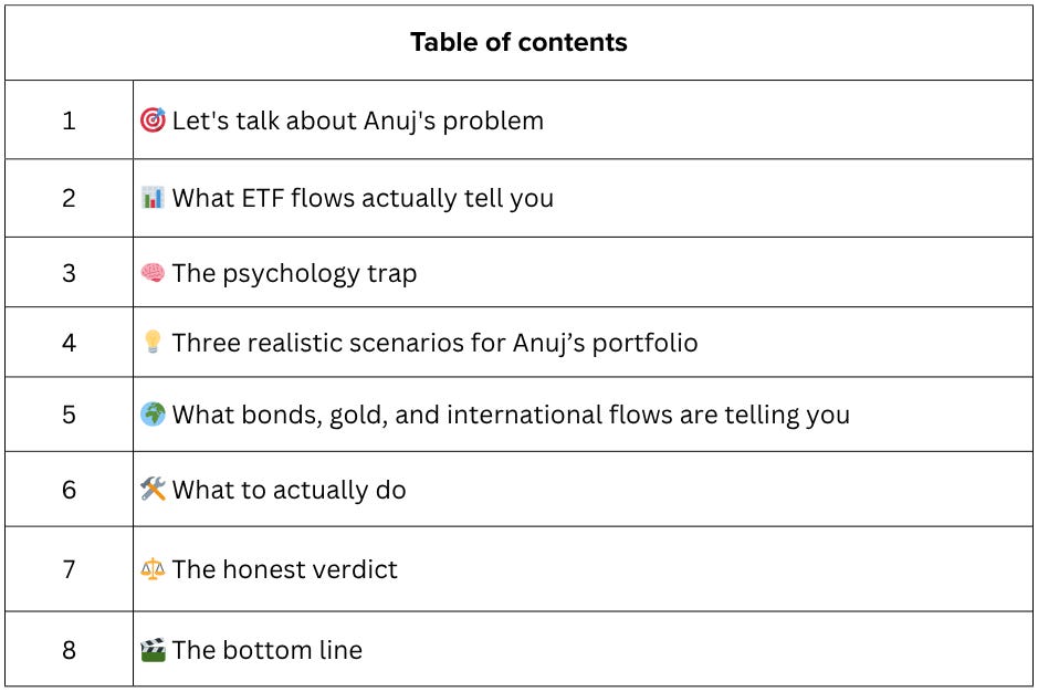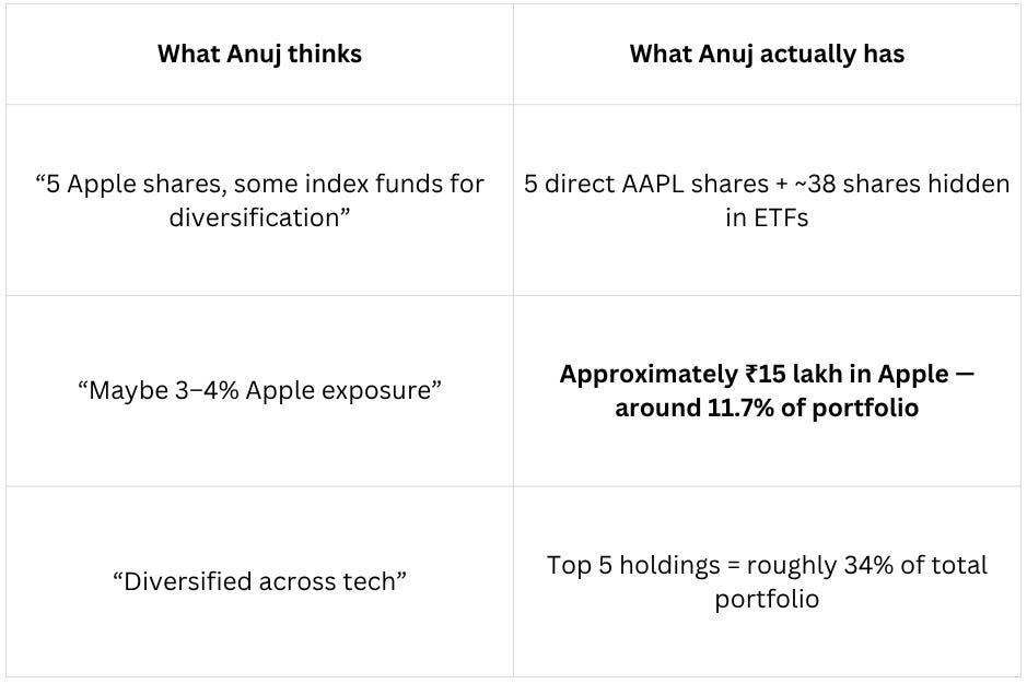 When Apple dropped roughly 8% in late March 2026 on concerns about iPhone demand dynamics in India, Anuj lost over ₹1 lakh in a single day — and most of it came from ETFs he’d bought “for safety.”