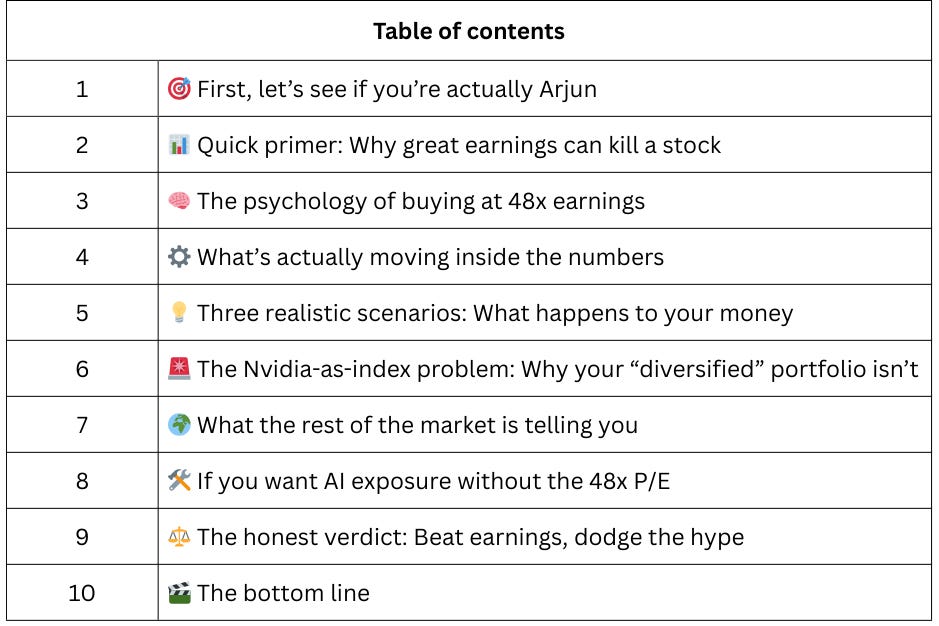 Arjun actually has ~$68,500 in Nvidia exposure, which is 40.8% of his portfolio.
