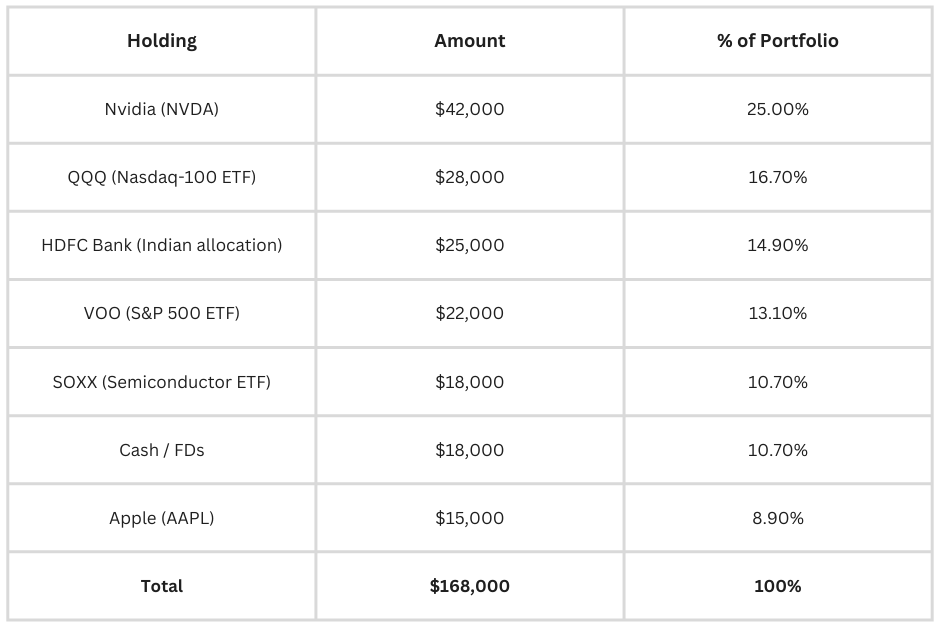 He’s been investing in US stocks through Winvesta for two years. He reads the tech earnings calls. He considers himself long-term bullish on AI. Here’s what he owns:
