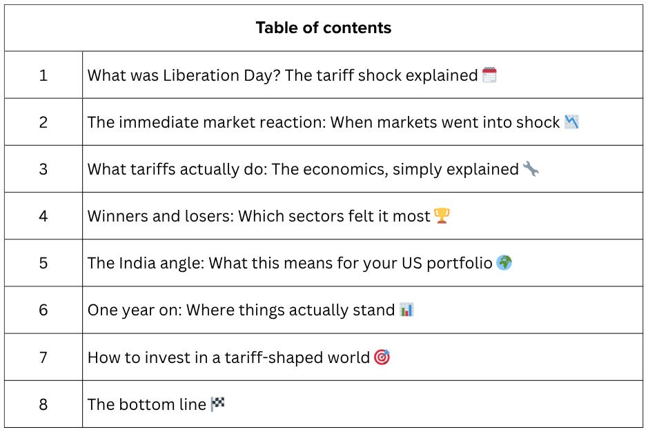 It was a structural inflexion point that rewrote the rules of global trade in a single afternoon, upending supply chains, corporate margins, inflation forecasts, and Fed policy all at once. Twelve months on, the dust has settled enough to see clearly. This is your full debrief — what happened, why it moved markets the way it did, who won, who lost, and what it means for you as an Indian investor with skin in the US market.
