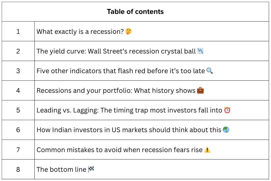 If you could only watch one recession indicator for the rest of your investing life, most economists would point you to the yield curve — specifically, the spread between the 10-year US Treasury yield and the 2-year (or sometimes 3-month) Treasury yield.