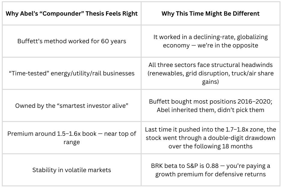 Abel’s letter was a masterclass in continuity signalling. He used Buffett’s phrase “buy wonderful businesses at fair prices” verbatim. He quoted Charlie Munger. He even structured the letter with the same railroad-insurance-energy order Buffett used for 40 years.