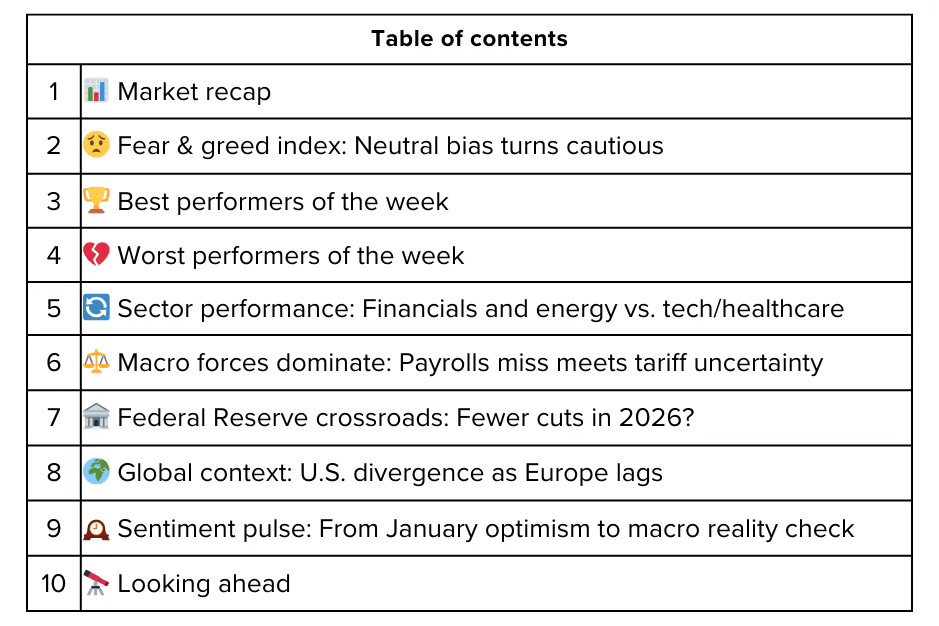 Wall Street’s first full trading week of 2026 delivered the kind of reality check that often follows holiday optimism. What started as a continuation of December’s record-setting momentum ended in frustration as Friday’s disappointing jobs report, paired with hotter-than-expected wage growth, sparked a Treasury yield spike, dollar surge, and broad risk-off rotation. The S&P 500 [finance:S&P 500] posted a 0.3% weekly loss, the Nasdaq Composite [finance:Nasdaq Composite] fell 0.6%, and even the relatively resilient Dow Jones Industrial Average [finance:Dow Jones Industrial Average] slipped 0.1%.