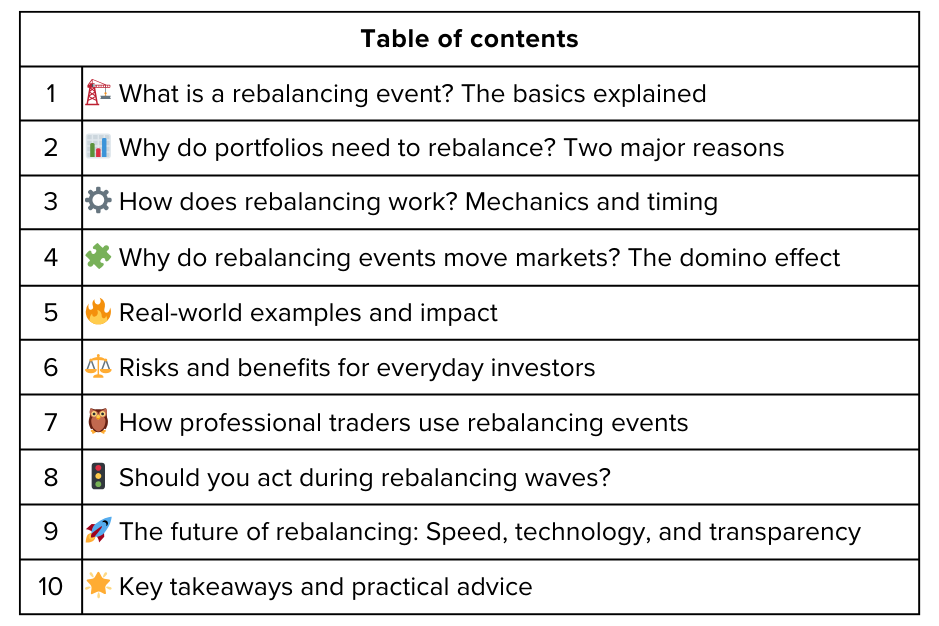 If you spend any time following financial news, you’ll notice that certain days seem a bit more hectic, stocks swing wildly, trading volumes explode, and analysts talk about “rebalancing events.” But what is a rebalancing event, and why does it make markets move in big ways? Whether you’re a new investor or a seasoned trader, understanding rebalancing is key to grasping the rhythm of Wall Street and protecting your portfolio. This guide will explain the concept, show its market impact, help you spot the signals, and give actionable advice for handling rebalancing waves in today’s world.
