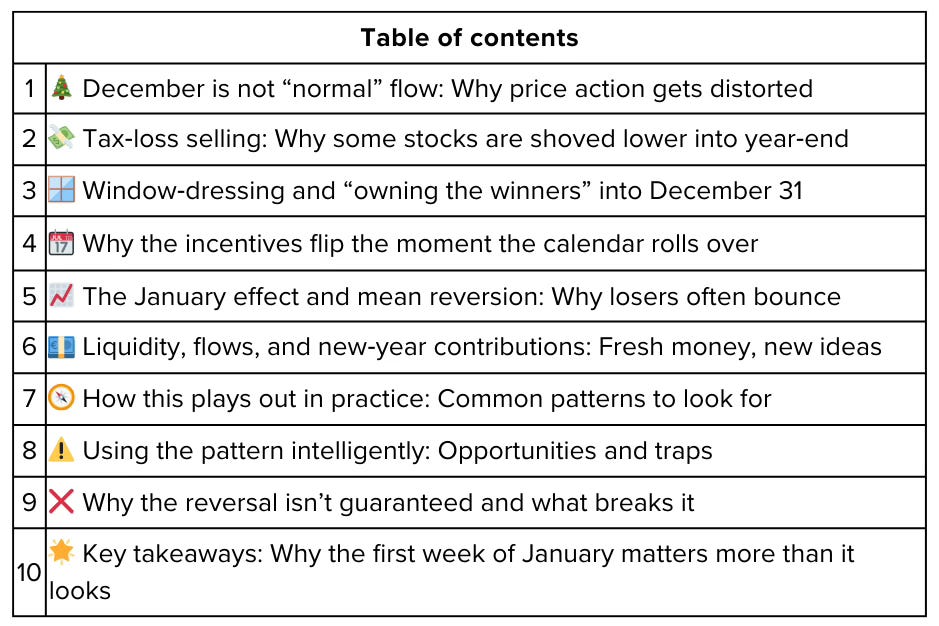 To understand the early‑January “reverse,” start with the reality that December is not a typical month for flows or incentives: