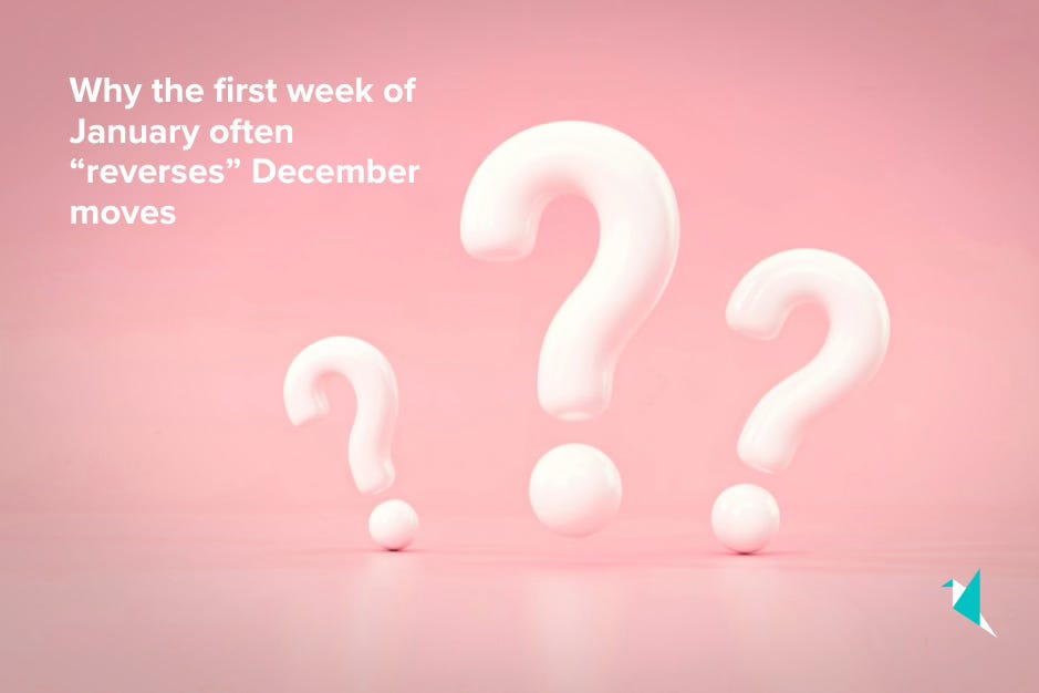 This article breaks down why the first week of January so often pushes markets in the opposite direction of late‑December flows, what’s going on under the hood in terms of taxes, positioning, and liquidity, and how investors can use this recurring pattern to think more clearly about both risk and opportunity.